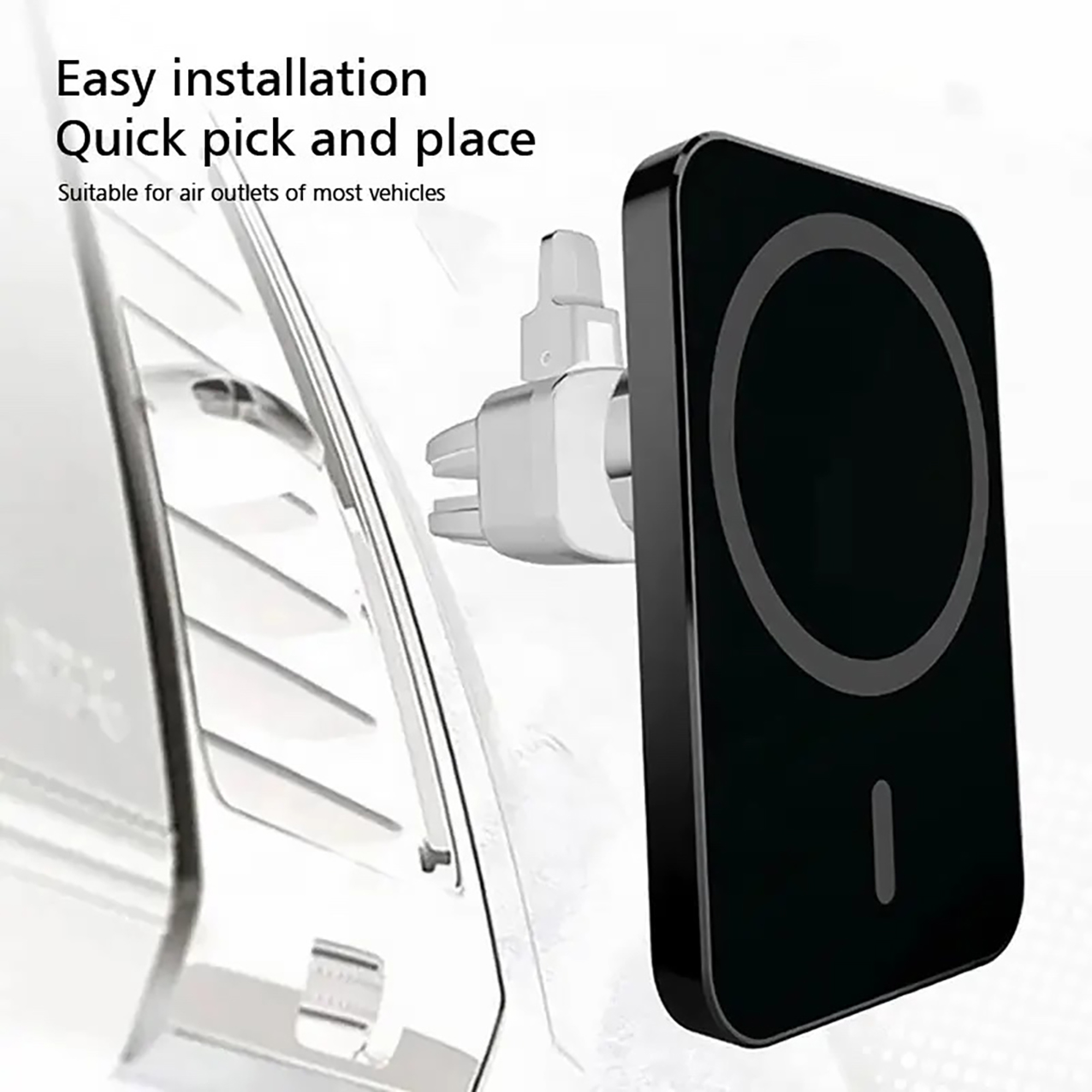 Este cargador inalámbrico para auto, con clip de ventilación mejorado y carga magnética de hasta 15W (compatible con iPhone 12 a más), ofrece sujeción segura, recarga rápida y estable incluso con vibraciones.