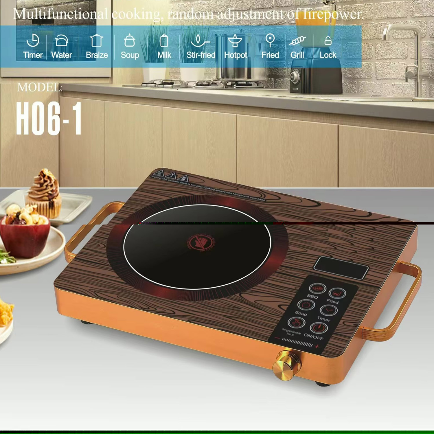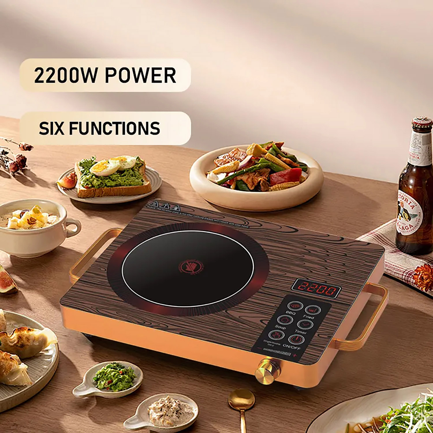 Esta cocina eléctrica radiante de 2200 W ofrece calentamiento rápido, control táctil con perilla y una superficie de vitrocerámica fácil de limpiar para cocinar con comodidad y estilo.