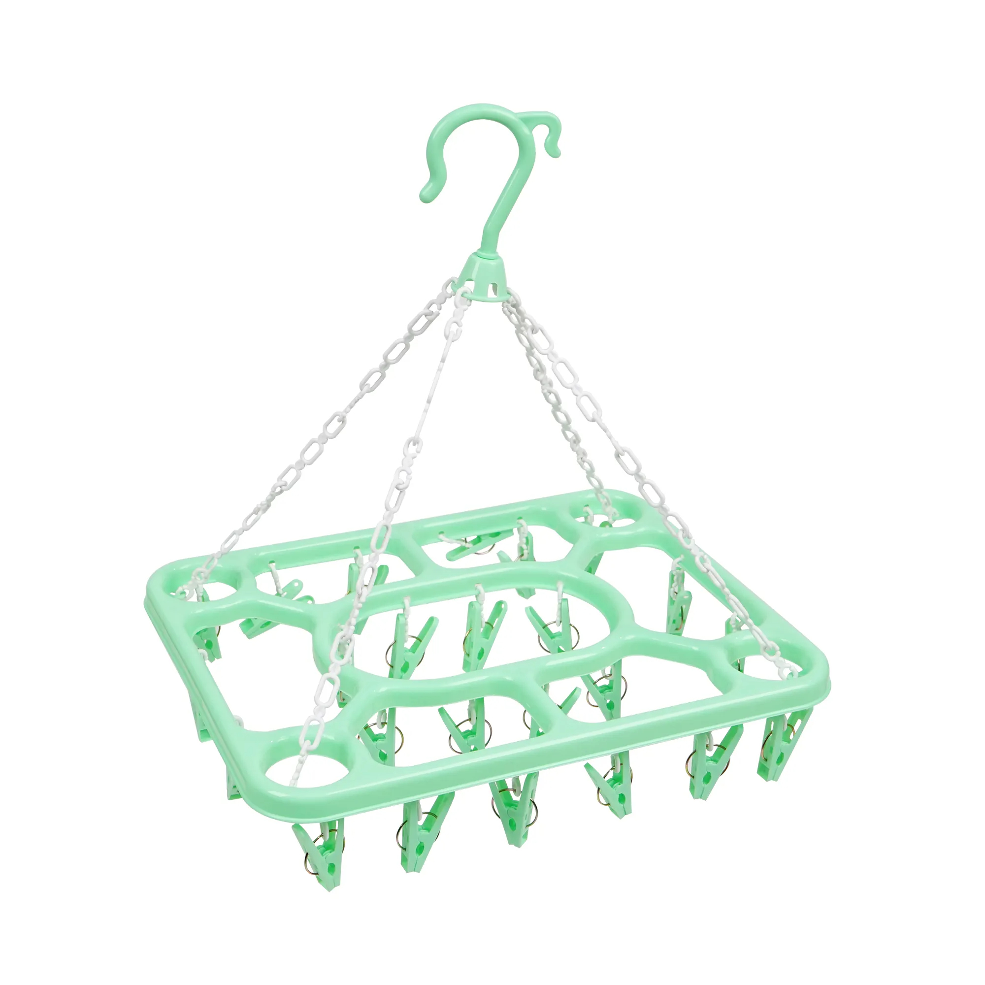 Ahorra espacio y seca tus prendas pequeñas de forma práctica con este colgador plegable de 20 clips.