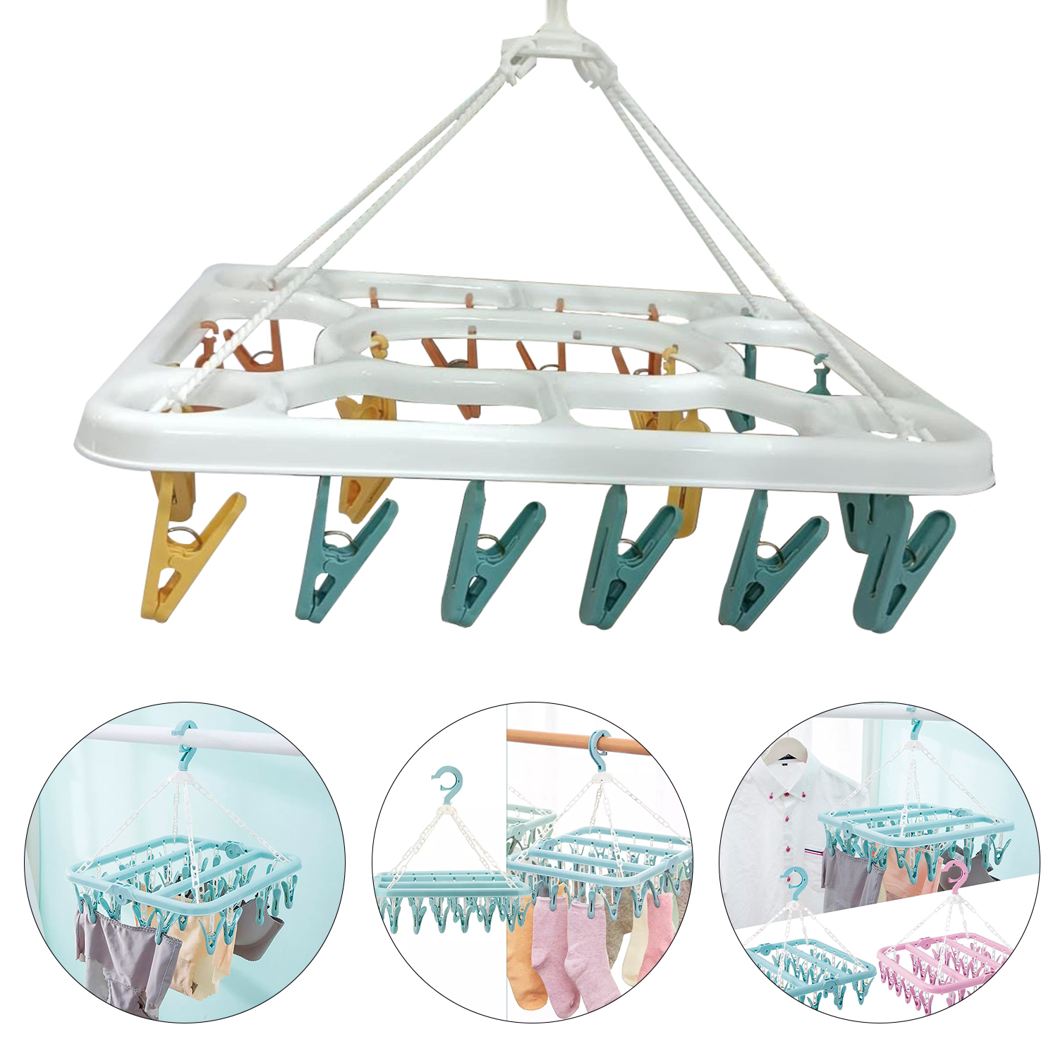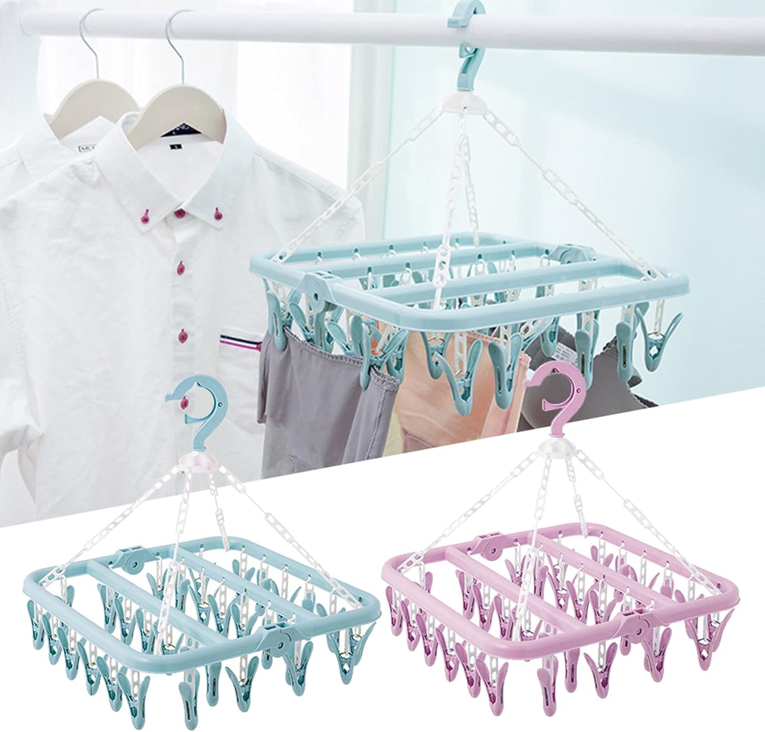 Colgador de ropa con 20 clips, pinzas plegables para secar ropa, calcetines, ropa interior, sujetadores y bufandas.