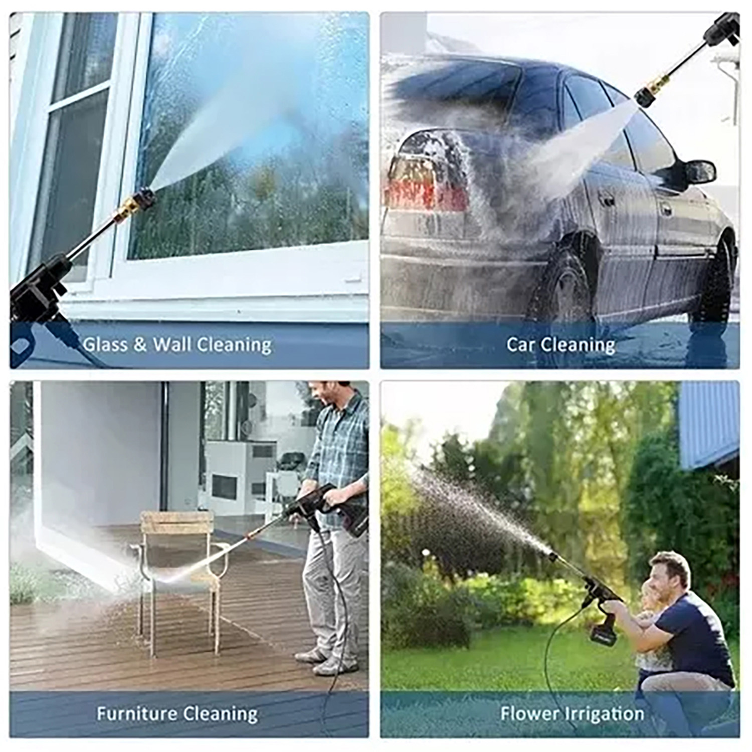 · Presión de agua ajustable, perfecta para eliminar suciedad difícil en autos, terrazas, muros, bicicletas, herramientas, ventanas y más.