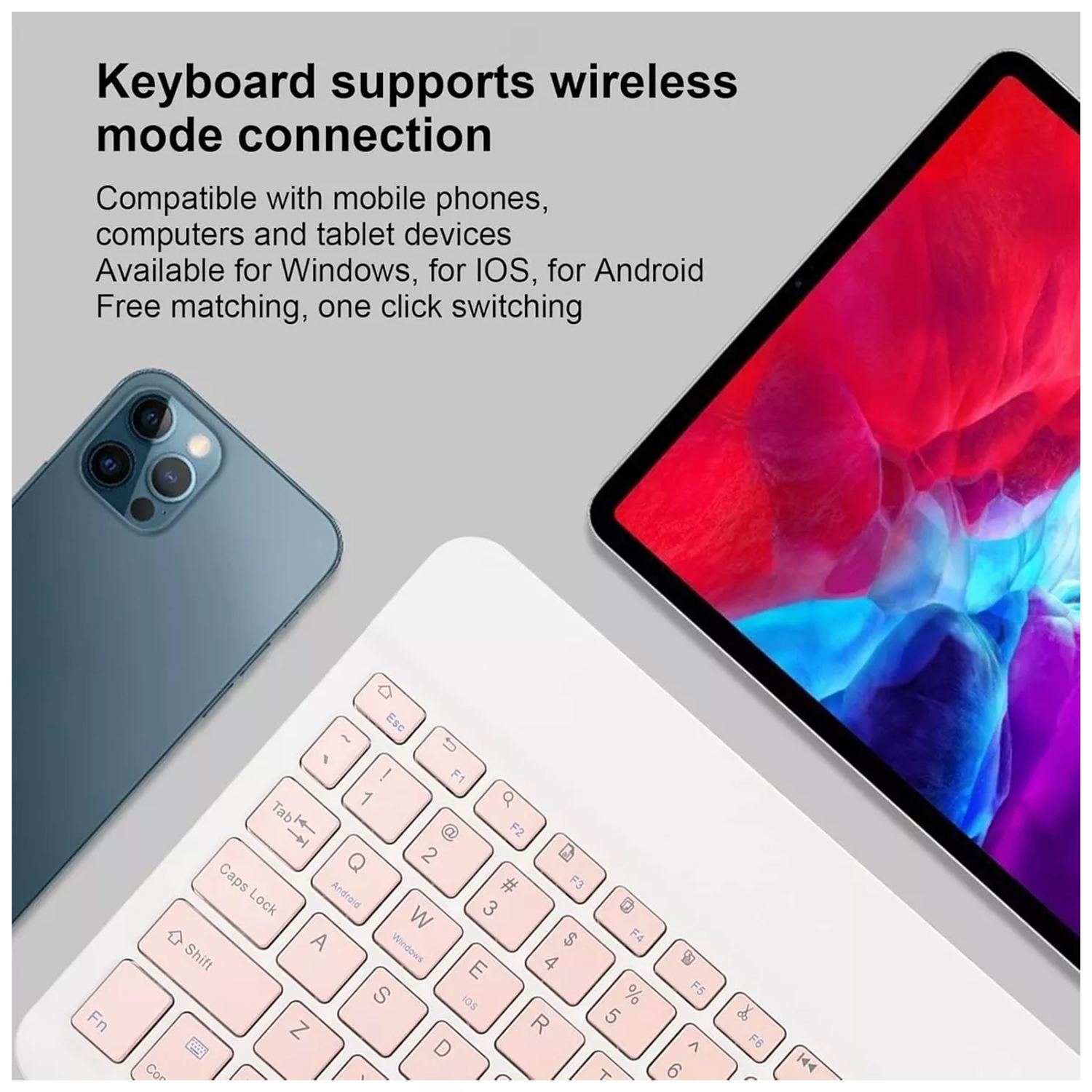 Kit de Teclado y Mouse inalámbrico portátil con Bluetooth – Rosado