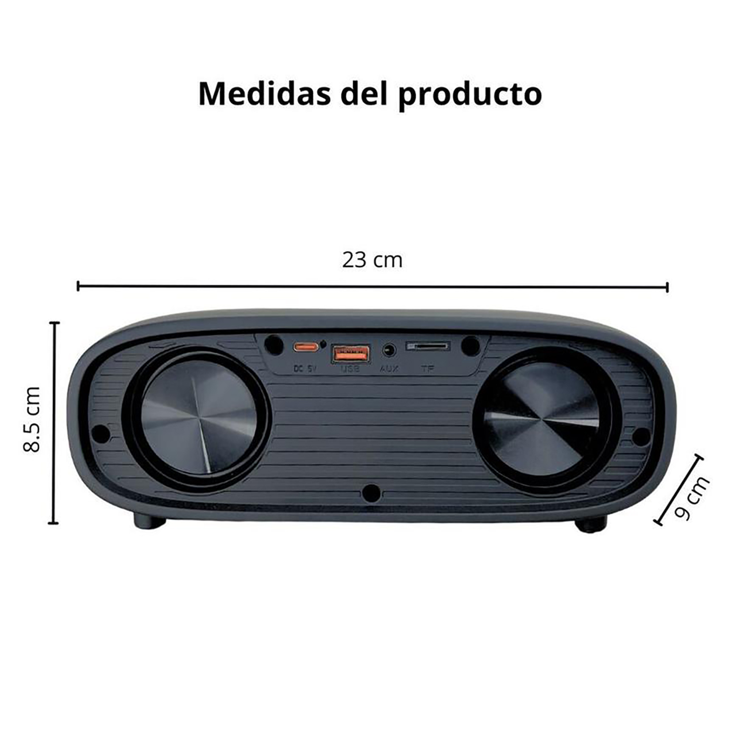 Con un diseño compacto de 23 cm x 9 cm x 10 cm y un peso de 1.1 kg, es fácil de transportar y perfecto para llevar a la playa, reuniones o viajes.