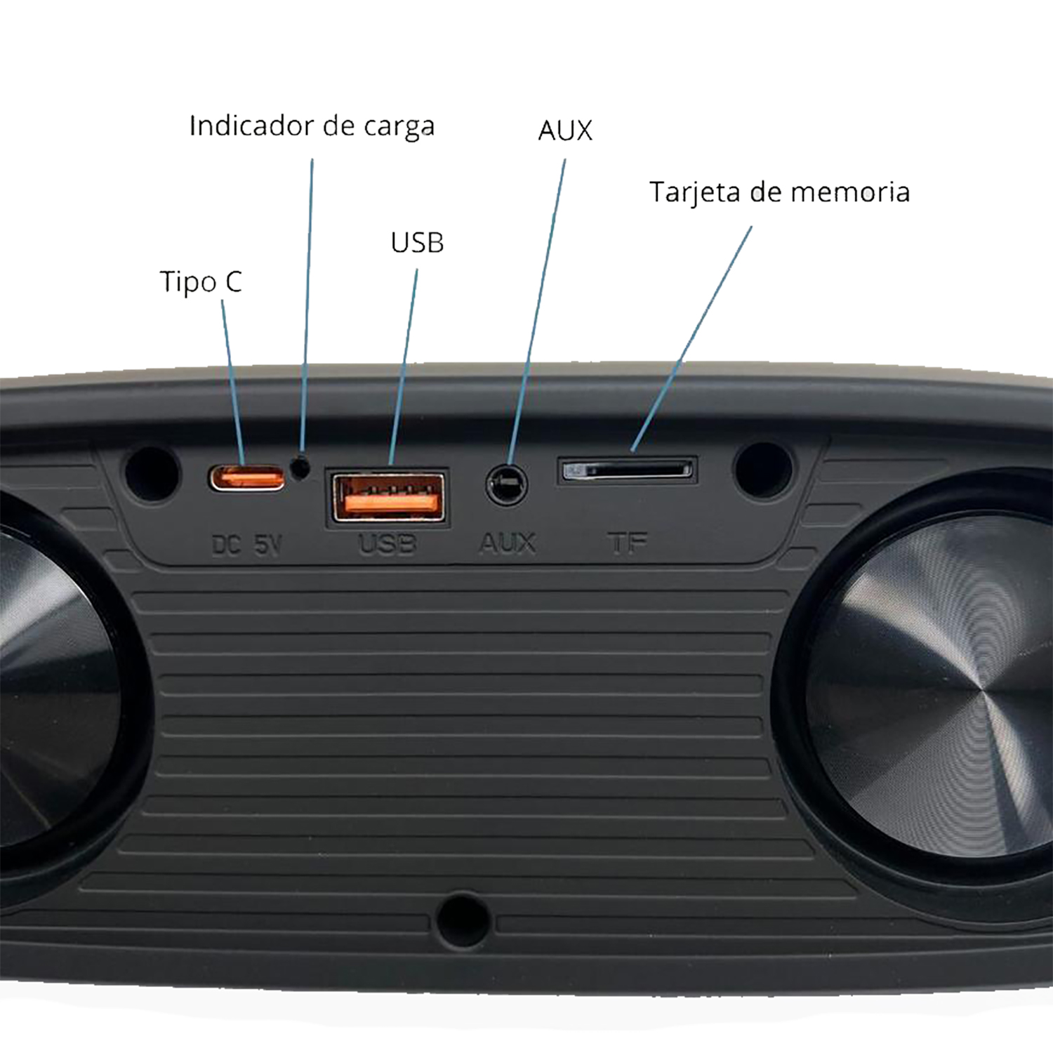 Además, cuenta con entradas USB y para tarjeta microSD, brindándote múltiples opciones para escuchar tus canciones favoritas.