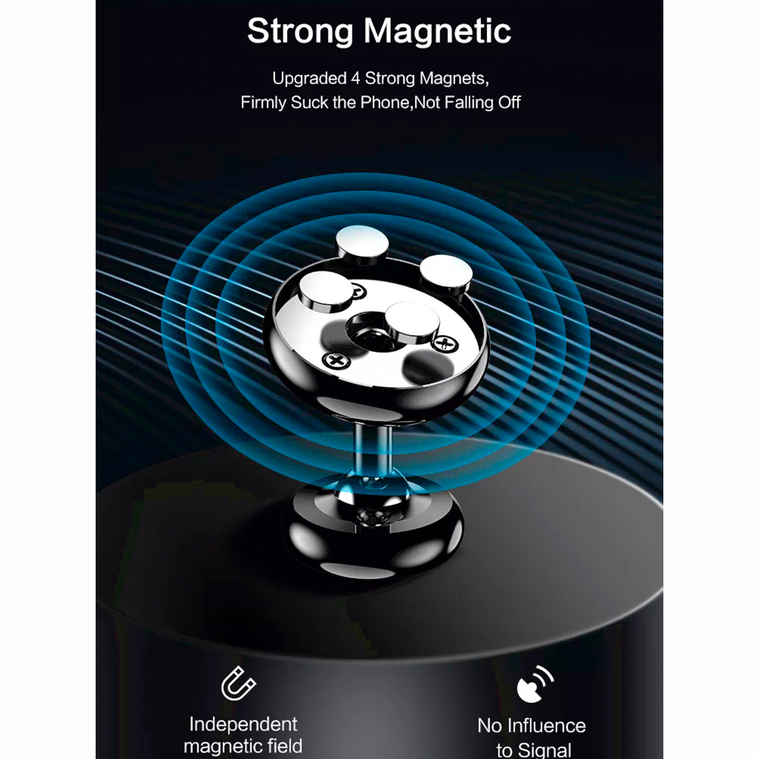 Soporte Magnético para fijar celular en Auto o más – Giro 360 – Negro