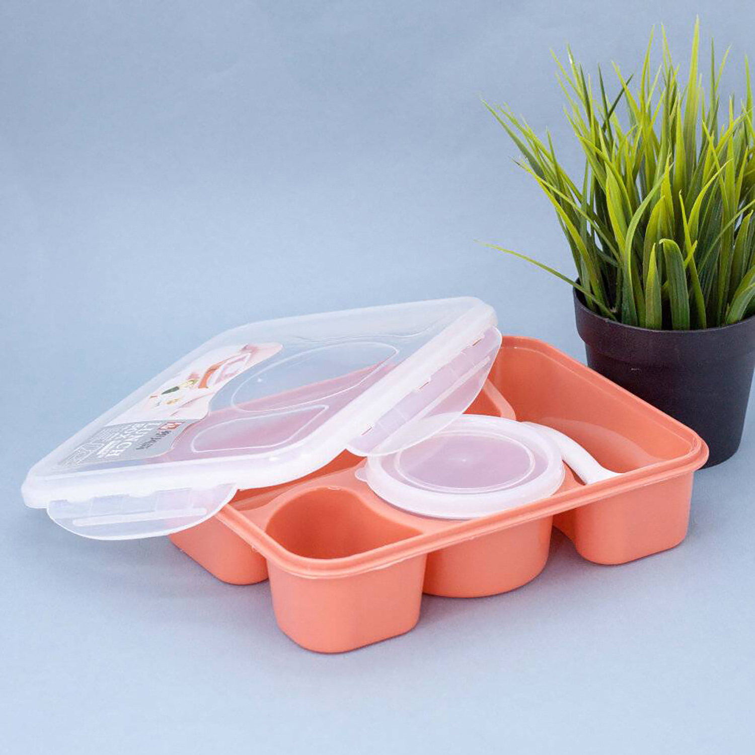 Lleva tus comidas de forma práctica, segura y organizada con esta Táper Lonchera con divisiones, diseñada para mantener cada alimento en su lugar y conservar su frescura.