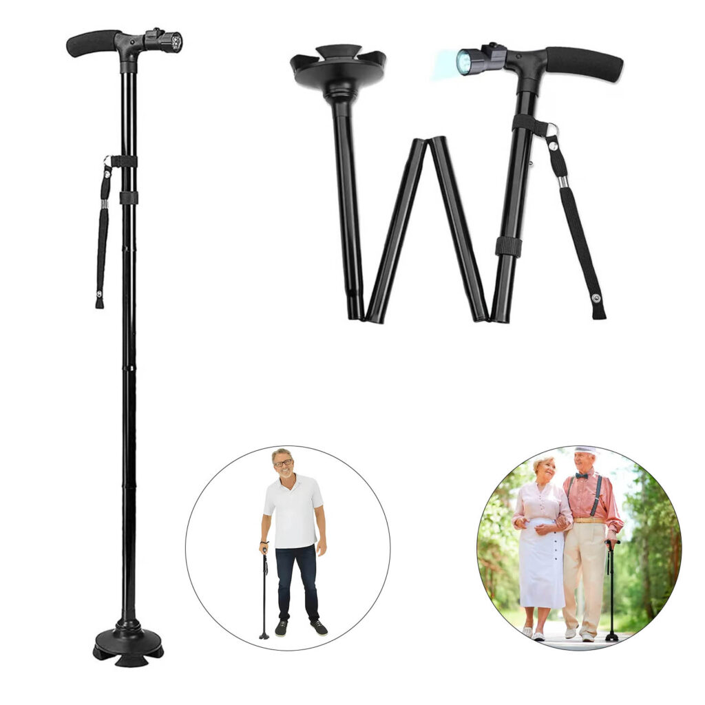 Bastón Ortopedico plegable antideslizante regulable con Luz Led
